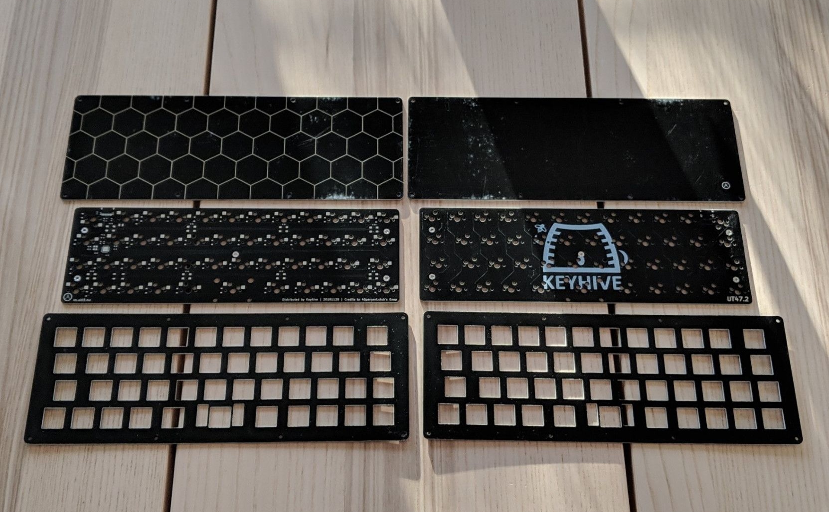 A revised version of Keyhive's earlier UT47 keyboard kit with hotswap socketing and RGB underglow.